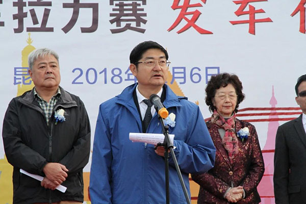 发车仪式上,云南省体育局局长尹勇、云南省东南亚南亚经贸合作发展联合会主席朱宝平分别致辞,云南省人大原副主任、云南省东南亚南亚经贸合作发展联合会原主席王义明向车队代表授拉力赛车队队旗,同时宣布拉力赛正式启程。