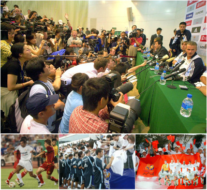 On Aug. 2, 2003, Real Madrid brought Beckham, Ronaldo, Zidane, Figo, Raul, R.Carlos as well as the honor “World best football club of 20th Century” to Beijing, and had a match with “Jianlibao Dragon” at Beijing Workers’ Stadium. Real Madrid ended the competition with 4 goals.