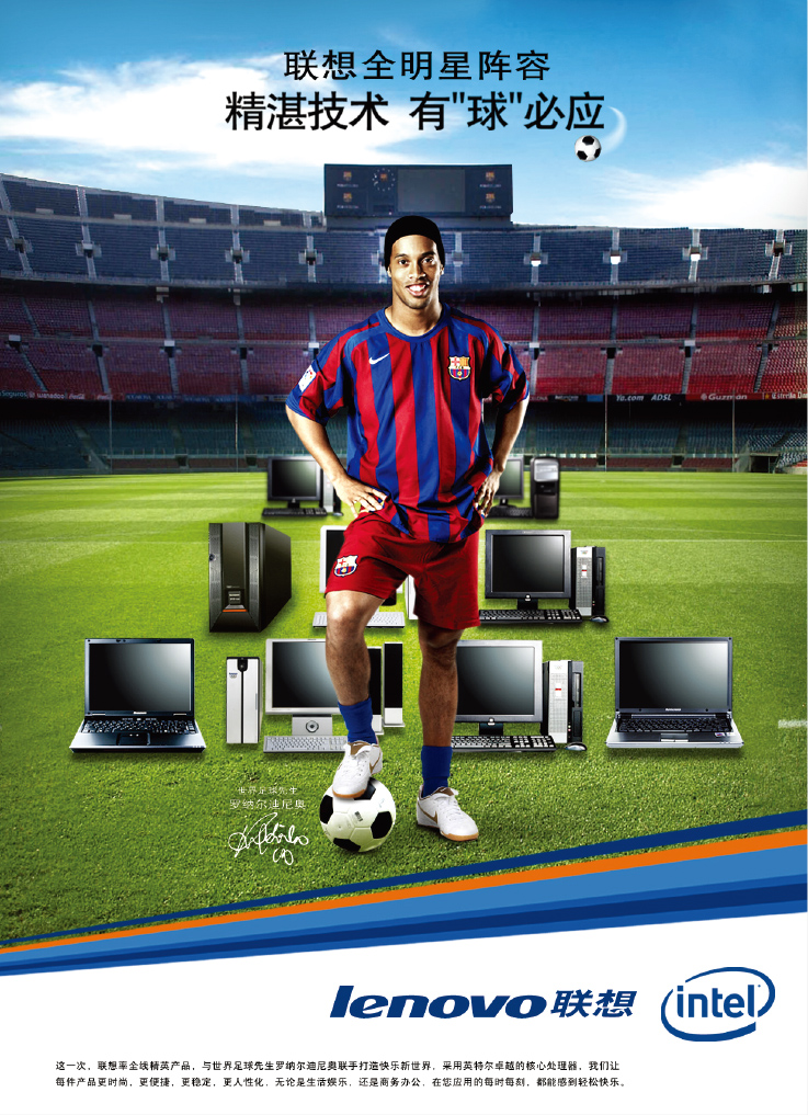 2006年世界杯赛前,刚刚收购IBM个人PC事业部的联想集团在高德的协助下成功签约世界足球先生罗纳尔迪尼奥,后者成为联想集团全球品牌形象代言人。